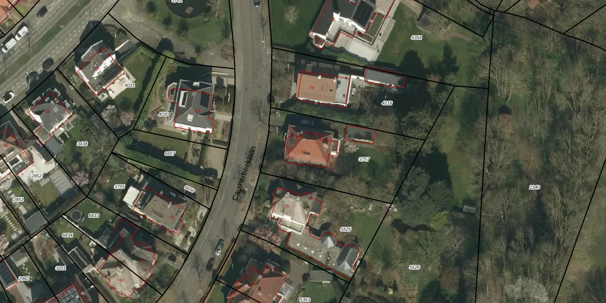 Het perceel waarop Caumerbeeklaan 72 staat heeft een oppervlakte van 1036 m². Dit is een zeer groot perceel. De perceeloppervlakte wordt geregistreerd door het Kadaster. Gedetailleerde informatie over de maten van dit perceel kunt u vinden in het rapport Kadastrale kaart met maatvoering van Caumerbeeklaan 72.