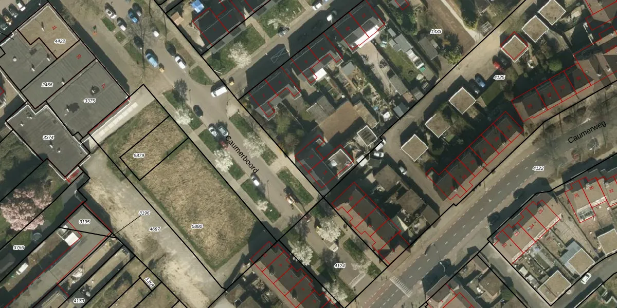 Het perceel waarop Caumerboord 16 staat heeft een oppervlakte van 4550 m². Dit is een zeer groot perceel. De perceeloppervlakte wordt geregistreerd door het Kadaster. Gedetailleerde informatie over de maten van dit perceel kunt u vinden in het rapport Kadastrale kaart met maatvoering van Caumerboord 16.