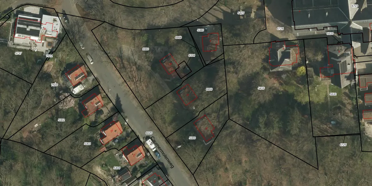 Caumermolenweg 16 is gelegen op kadastraal perceel HLN01G6959. Deze kadastrale aanduiding is uniek en wordt gebruikt door het Kadaster om eigendomsrechten en andere zakelijke rechten vast te leggen. Het perceel maakt onderdeel uit van de kadastrale gemeente Heerlen.