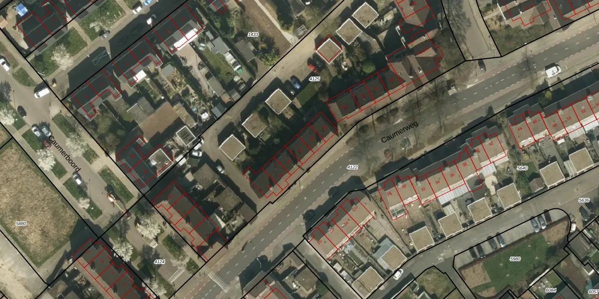 Het perceel waarop Caumerweg 27 staat heeft een oppervlakte van 4111 m². Dit is een zeer groot perceel. De perceeloppervlakte wordt geregistreerd door het Kadaster. Gedetailleerde informatie over de maten van dit perceel kunt u vinden in het rapport Kadastrale kaart met maatvoering van Caumerweg 27.
