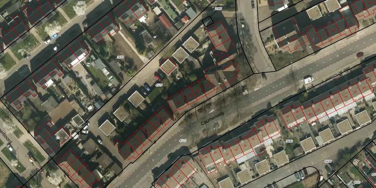 Het perceel waarop Caumerweg 35 staat heeft een oppervlakte van 4111 m². Dit is een zeer groot perceel. De perceeloppervlakte wordt geregistreerd door het Kadaster. Gedetailleerde informatie over de maten van dit perceel kunt u vinden in het rapport Kadastrale kaart met maatvoering van Caumerweg 35.