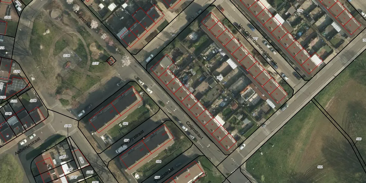 Het perceel waarop Colijnstraat 12 staat heeft een oppervlakte van 3430 m². Dit is een zeer groot perceel. De perceeloppervlakte wordt geregistreerd door het Kadaster. Gedetailleerde informatie over de maten van dit perceel kunt u vinden in het rapport Kadastrale kaart met maatvoering van Colijnstraat 12.