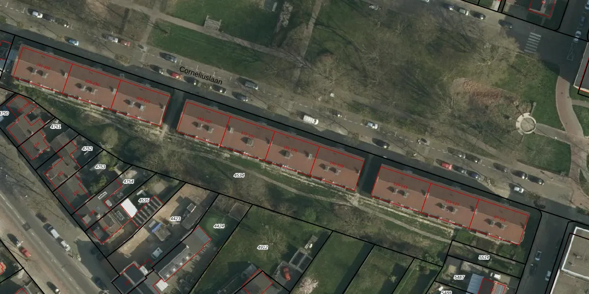 Het perceel waarop Corneliuslaan 171 staat heeft een oppervlakte van 4905 m². Dit is een zeer groot perceel. De perceeloppervlakte wordt geregistreerd door het Kadaster. Gedetailleerde informatie over de maten van dit perceel kunt u vinden in het rapport Kadastrale kaart met maatvoering van Corneliuslaan 171.