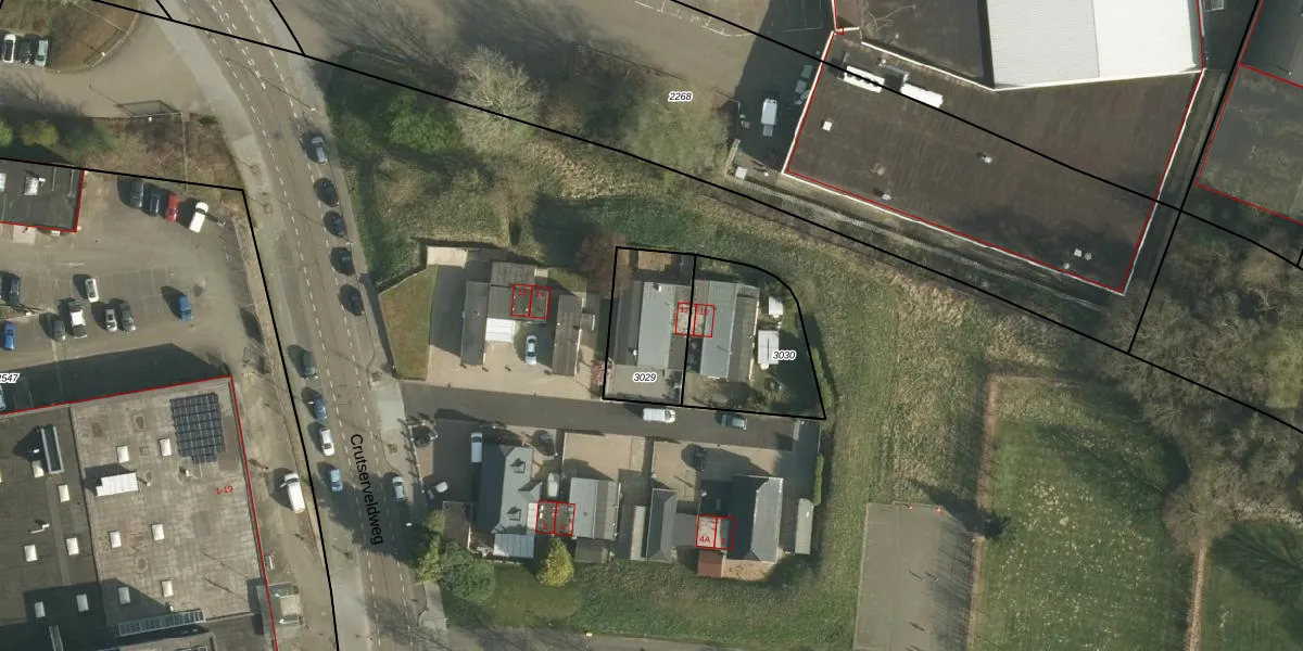 Crutserveldweg 12 is gelegen op kadastraal perceel HLN01M3029. Deze kadastrale aanduiding is uniek en wordt gebruikt door het Kadaster om eigendomsrechten en andere zakelijke rechten vast te leggen. Het perceel maakt onderdeel uit van de kadastrale gemeente Heerlen.
