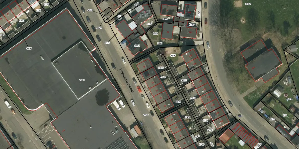 Damascusstraat 17 is gelegen op kadastraal perceel HLN01K5774. Deze kadastrale aanduiding is uniek en wordt gebruikt door het Kadaster om eigendomsrechten en andere zakelijke rechten vast te leggen. Het perceel maakt onderdeel uit van de kadastrale gemeente Heerlen.