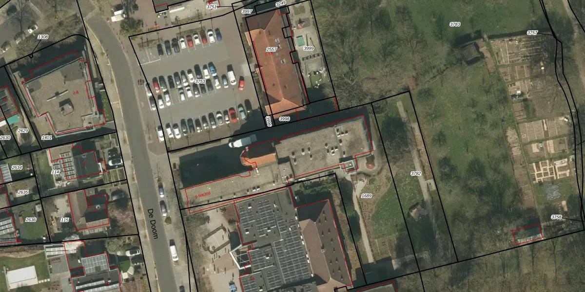 Het perceel waarop De Doom 9-K206 staat heeft een oppervlakte van 2185 m². Dit is een zeer groot perceel. De perceeloppervlakte wordt geregistreerd door het Kadaster. Gedetailleerde informatie over de maten van dit perceel kunt u vinden in het rapport Kadastrale kaart met maatvoering van De Doom 9-K206.