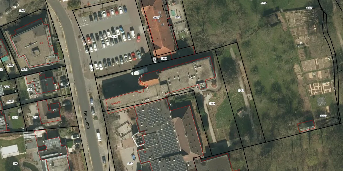 Het perceel waarop De Doom 9-K209 staat heeft een oppervlakte van 2185 m². Dit is een zeer groot perceel. De perceeloppervlakte wordt geregistreerd door het Kadaster. Gedetailleerde informatie over de maten van dit perceel kunt u vinden in het rapport Kadastrale kaart met maatvoering van De Doom 9-K209.