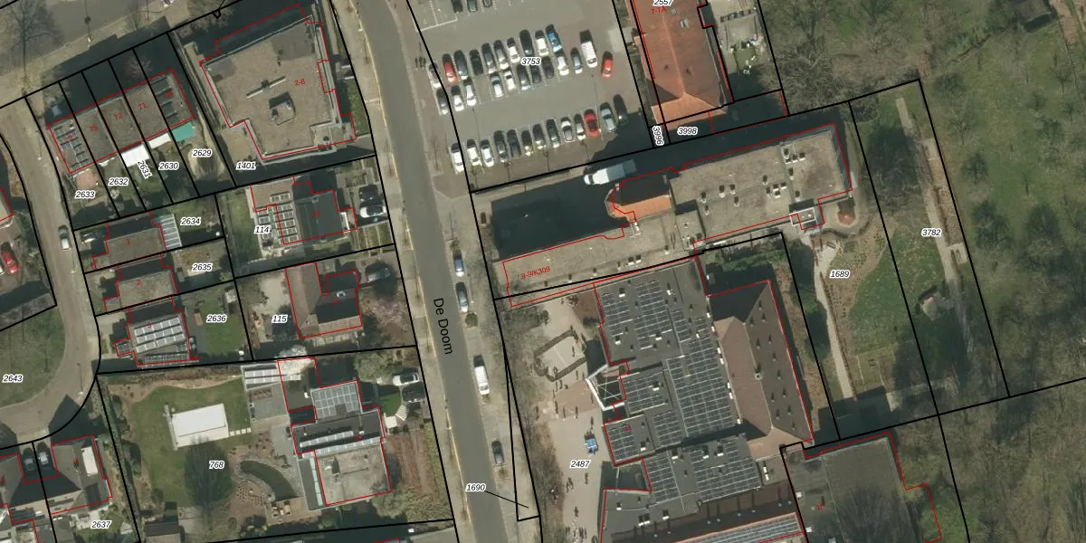 Het perceel waarop De Doom 9-K213 staat heeft een oppervlakte van 2185 m². Dit is een zeer groot perceel. De perceeloppervlakte wordt geregistreerd door het Kadaster. Gedetailleerde informatie over de maten van dit perceel kunt u vinden in het rapport Kadastrale kaart met maatvoering van De Doom 9-K213.