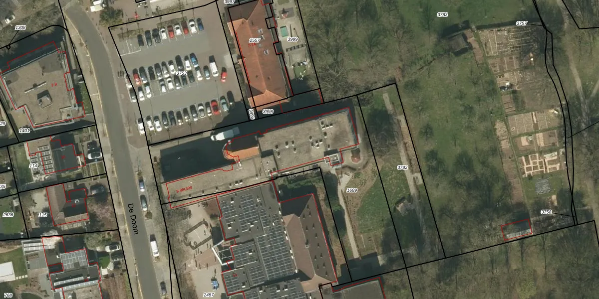 Het perceel waarop De Doom 9-K308 staat heeft een oppervlakte van 2185 m². Dit is een zeer groot perceel. De perceeloppervlakte wordt geregistreerd door het Kadaster. Gedetailleerde informatie over de maten van dit perceel kunt u vinden in het rapport Kadastrale kaart met maatvoering van De Doom 9-K308.