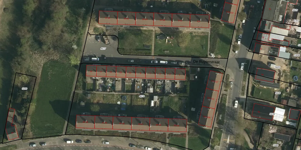 De Ruyterstraat 7 is gelegen op kadastraal perceel HLN01A4678. Deze kadastrale aanduiding is uniek en wordt gebruikt door het Kadaster om eigendomsrechten en andere zakelijke rechten vast te leggen. Het perceel maakt onderdeel uit van de kadastrale gemeente Heerlen.