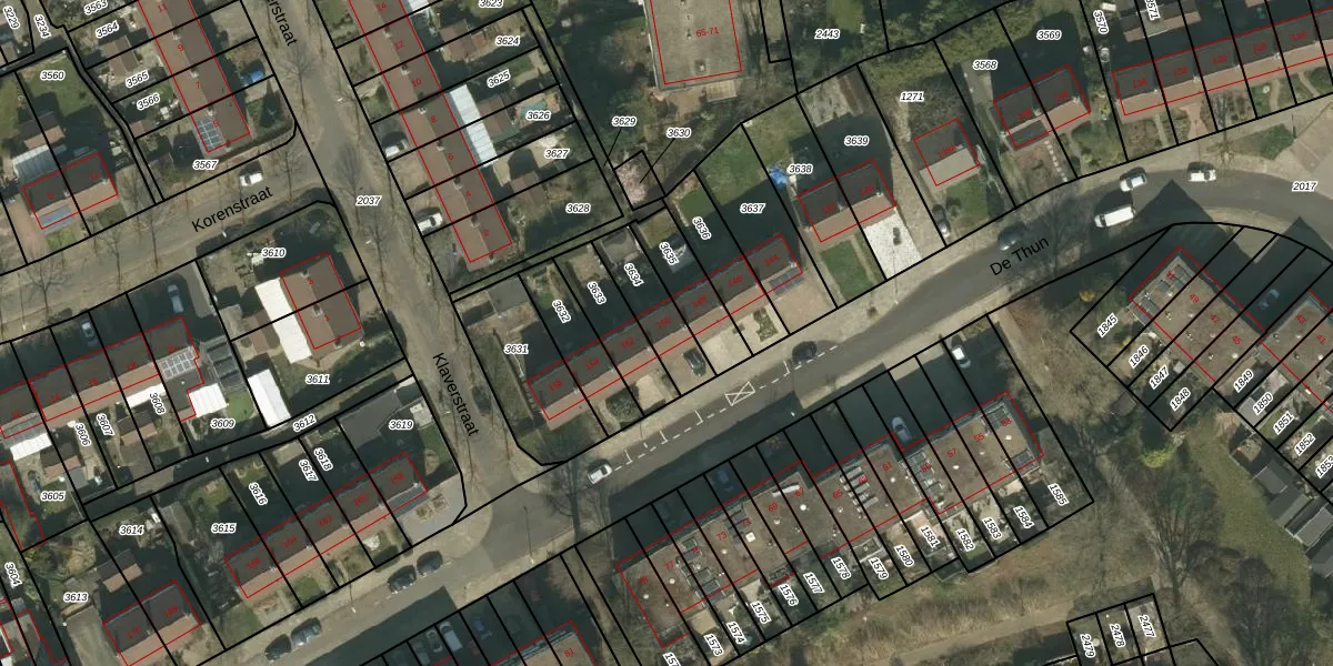 Het perceel waarop De Thun 150 staat heeft een oppervlakte van 165 m². Dit is een middelgroot perceel. De perceeloppervlakte wordt geregistreerd door het Kadaster. Gedetailleerde informatie over de maten van dit perceel kunt u vinden in het rapport Kadastrale kaart met maatvoering van De Thun 150.
