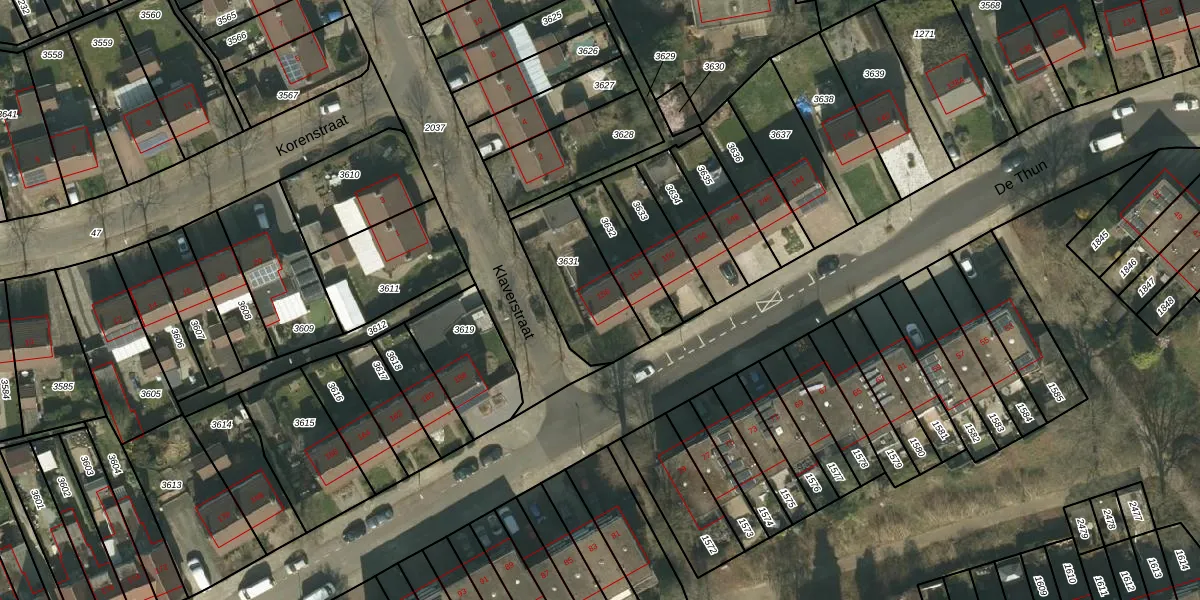 Het perceel waarop De Thun 156 staat heeft een oppervlakte van 325 m². Dit is een groot perceel. De perceeloppervlakte wordt geregistreerd door het Kadaster. Gedetailleerde informatie over de maten van dit perceel kunt u vinden in het rapport Kadastrale kaart met maatvoering van De Thun 156.