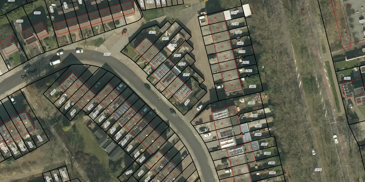 Het perceel waarop De Thun 62 staat heeft een oppervlakte van 220 m². Dit is een middelgroot perceel. De perceeloppervlakte wordt geregistreerd door het Kadaster. Gedetailleerde informatie over de maten van dit perceel kunt u vinden in het rapport Kadastrale kaart met maatvoering van De Thun 62.