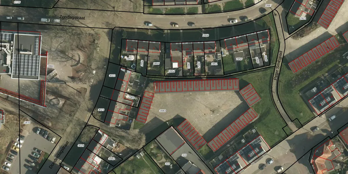Het perceel waarop Donderdagstraat 9-GB09 staat heeft een oppervlakte van 4770 m². Dit is een zeer groot perceel. De perceeloppervlakte wordt geregistreerd door het Kadaster. Gedetailleerde informatie over de maten van dit perceel kunt u vinden in het rapport Kadastrale kaart met maatvoering van Donderdagstraat 9-GB09.