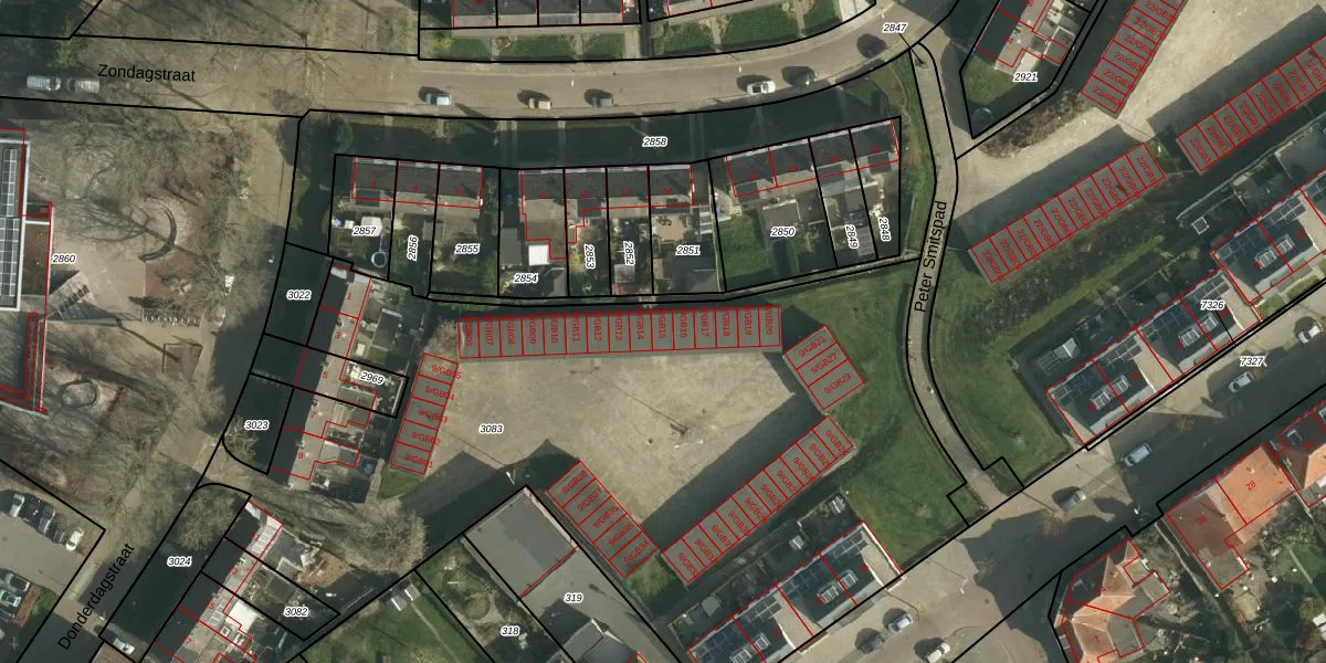 Het perceel waarop Donderdagstraat 9-GB15 staat heeft een oppervlakte van 4770 m². Dit is een zeer groot perceel. De perceeloppervlakte wordt geregistreerd door het Kadaster. Gedetailleerde informatie over de maten van dit perceel kunt u vinden in het rapport Kadastrale kaart met maatvoering van Donderdagstraat 9-GB15.