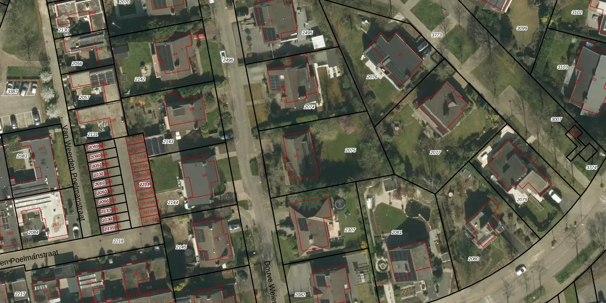 Het perceel waarop Douve Weienstraat 65 staat heeft een oppervlakte van 880 m². Dit is een groot perceel. De perceeloppervlakte wordt geregistreerd door het Kadaster. Gedetailleerde informatie over de maten van dit perceel kunt u vinden in het rapport Kadastrale kaart met maatvoering van Douve Weienstraat 65.
