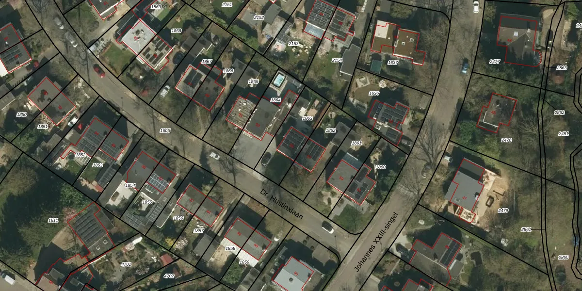 Dr. Hustinxlaan 55 is gelegen op kadastraal perceel HLN01K1863. Deze kadastrale aanduiding is uniek en wordt gebruikt door het Kadaster om eigendomsrechten en andere zakelijke rechten vast te leggen. Het perceel maakt onderdeel uit van de kadastrale gemeente Heerlen.