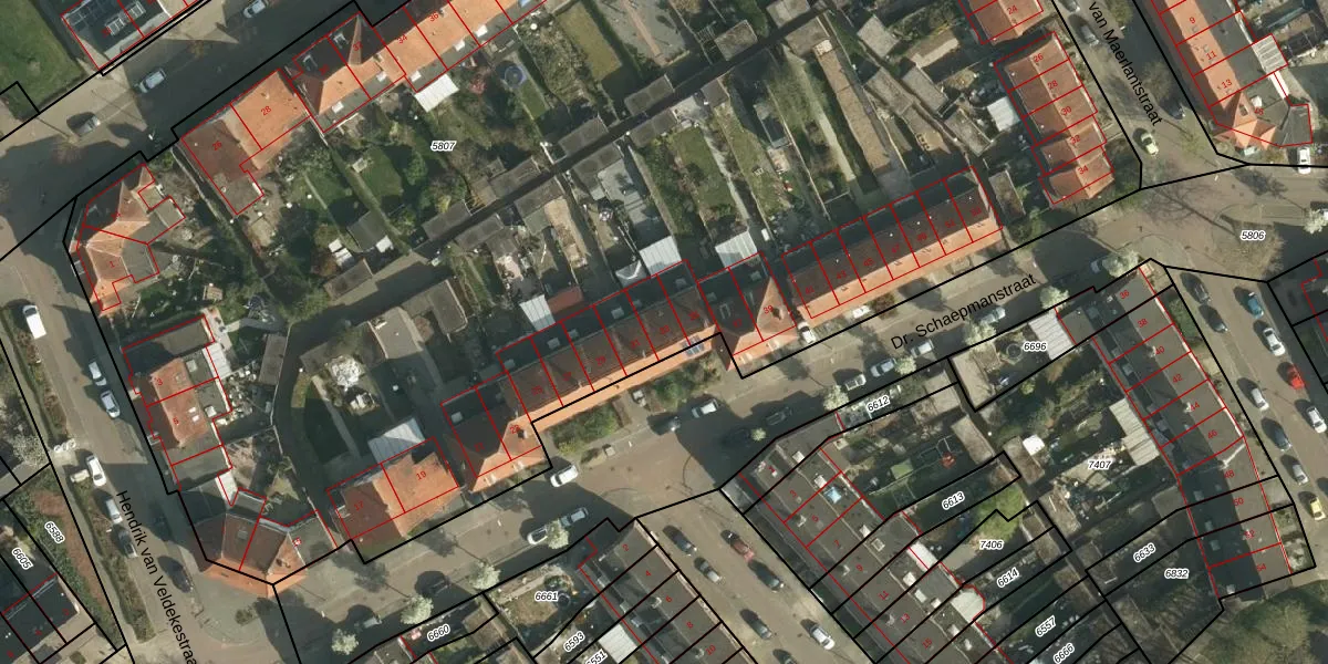 Dr. Schaepmanstraat 33 is gelegen op kadastraal perceel HLN01G5807. Deze kadastrale aanduiding is uniek en wordt gebruikt door het Kadaster om eigendomsrechten en andere zakelijke rechten vast te leggen. Het perceel maakt onderdeel uit van de kadastrale gemeente Heerlen.