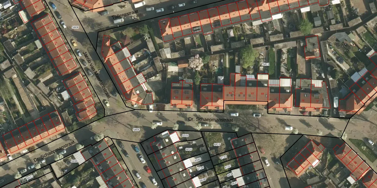 Dr. Schaepmanstraat 57 is gelegen op kadastraal perceel HLN01G5811. Deze kadastrale aanduiding is uniek en wordt gebruikt door het Kadaster om eigendomsrechten en andere zakelijke rechten vast te leggen. Het perceel maakt onderdeel uit van de kadastrale gemeente Heerlen.