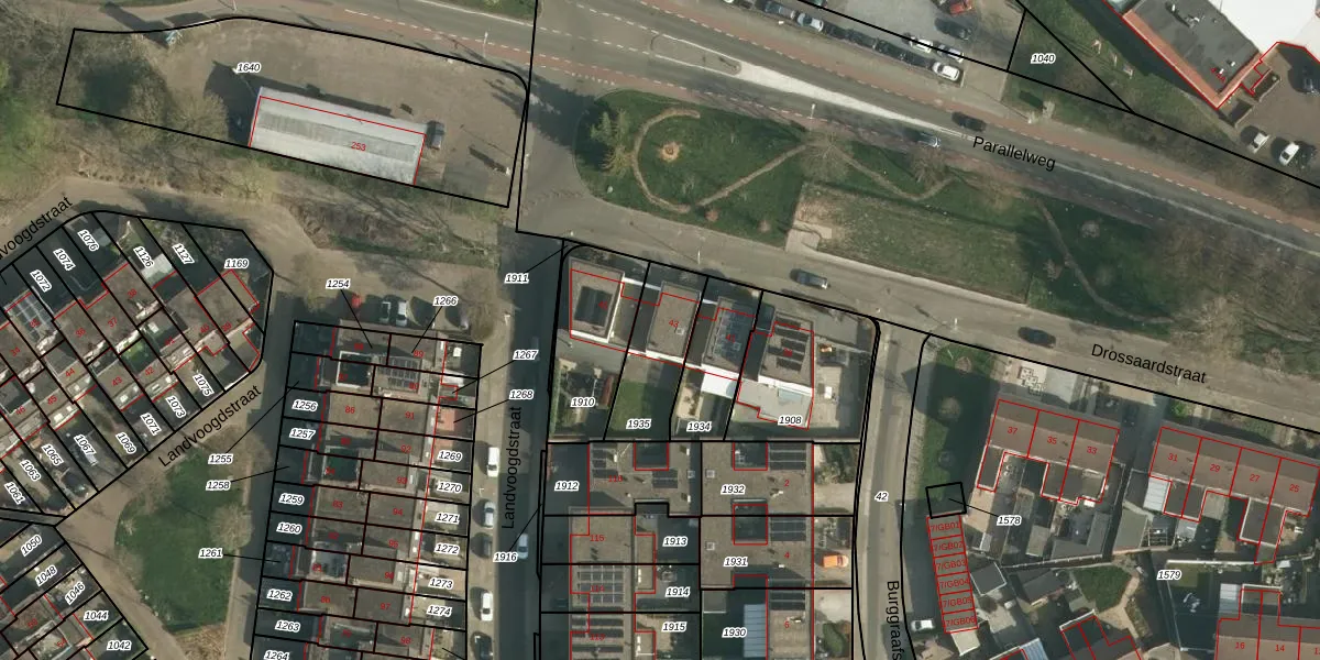 Het perceel waarop Drossaardstraat 43 staat heeft een oppervlakte van 242 m². Dit is een middelgroot perceel. De perceeloppervlakte wordt geregistreerd door het Kadaster. Gedetailleerde informatie over de maten van dit perceel kunt u vinden in het rapport Kadastrale kaart met maatvoering van Drossaardstraat 43.