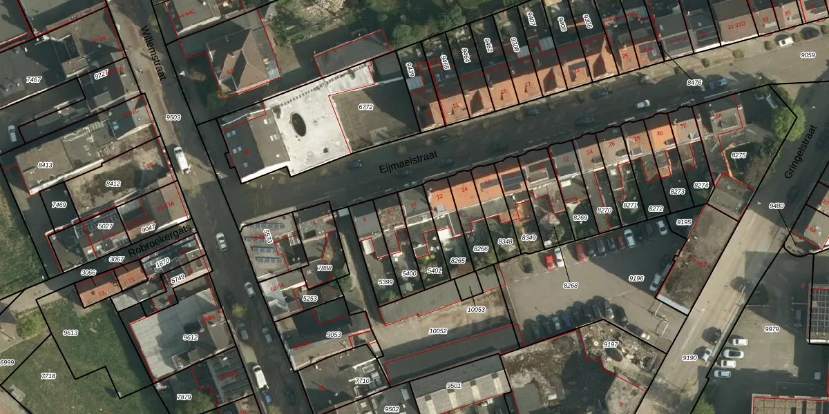 Gebruik de zoekbalk of klik op een perceel voor informatie over de adressen binnen dit perceel.