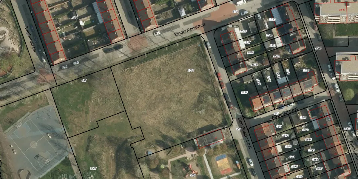 Het perceel waarop Eindhovenstraat 53 staat heeft een oppervlakte van 2915 m². Dit is een zeer groot perceel. De perceeloppervlakte wordt geregistreerd door het Kadaster. Gedetailleerde informatie over de maten van dit perceel kunt u vinden in het rapport Kadastrale kaart met maatvoering van Eindhovenstraat 53.