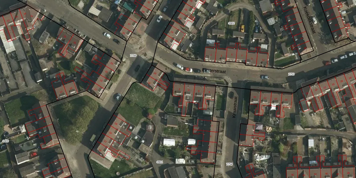 Eksterstraat 2 is gelegen op kadastraal perceel HLN01B3901. Deze kadastrale aanduiding is uniek en wordt gebruikt door het Kadaster om eigendomsrechten en andere zakelijke rechten vast te leggen. Het perceel maakt onderdeel uit van de kadastrale gemeente Heerlen.
