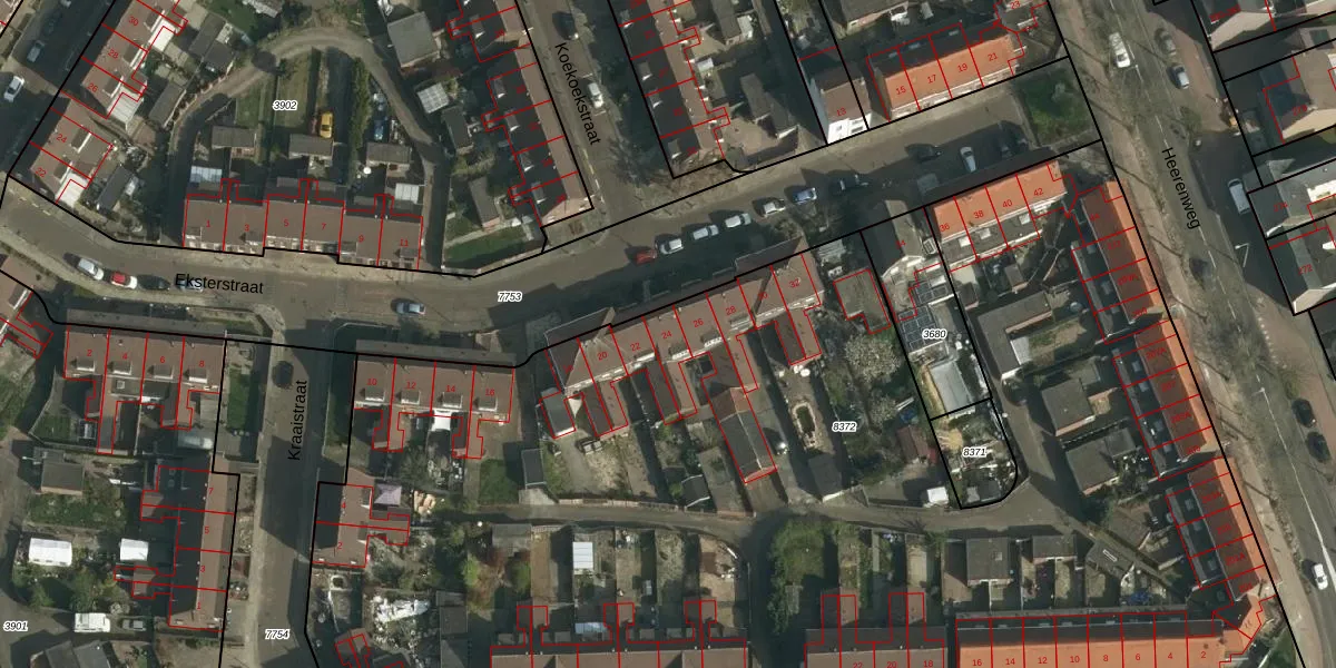 Eksterstraat 24 is gelegen op kadastraal perceel HLN01B8372. Deze kadastrale aanduiding is uniek en wordt gebruikt door het Kadaster om eigendomsrechten en andere zakelijke rechten vast te leggen. Het perceel maakt onderdeel uit van de kadastrale gemeente Heerlen.