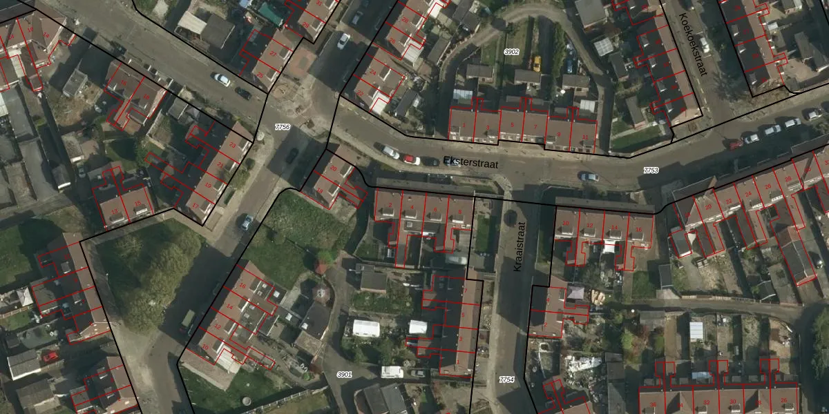 Eksterstraat 4 is gelegen op kadastraal perceel HLN01B3901. Deze kadastrale aanduiding is uniek en wordt gebruikt door het Kadaster om eigendomsrechten en andere zakelijke rechten vast te leggen. Het perceel maakt onderdeel uit van de kadastrale gemeente Heerlen.