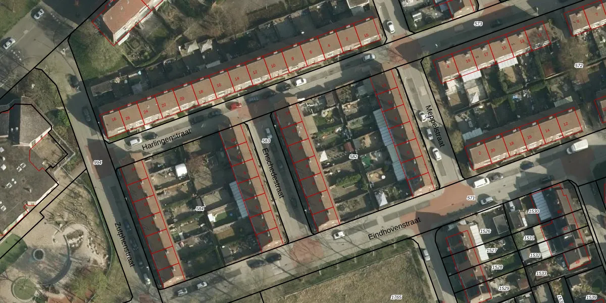 Het perceel waarop Enschedestraat 10 staat heeft een oppervlakte van 1900 m². Dit is een zeer groot perceel. De perceeloppervlakte wordt geregistreerd door het Kadaster. Gedetailleerde informatie over de maten van dit perceel kunt u vinden in het rapport Kadastrale kaart met maatvoering van Enschedestraat 10.