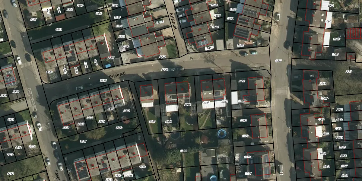 Gebruik de zoekbalk of klik op een perceel voor informatie over de adressen binnen dit perceel.
