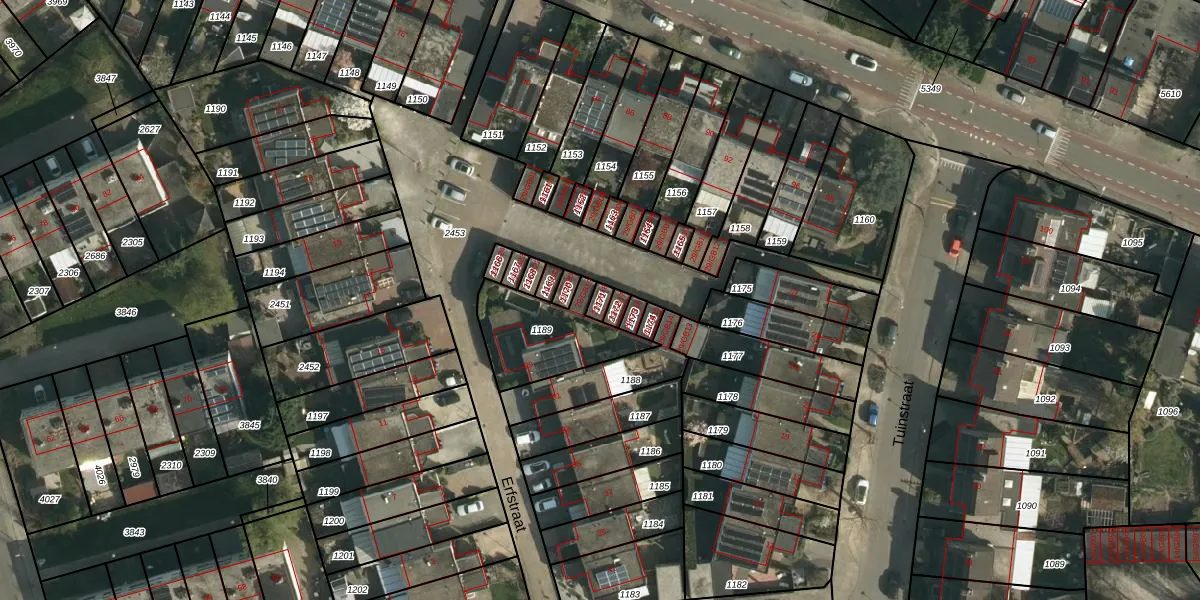 Gebruik de zoekbalk of klik op een perceel voor informatie over de adressen binnen dit perceel.