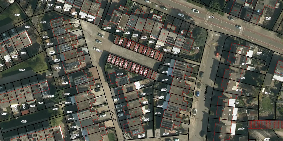 Gebruik de zoekbalk of klik op een perceel voor informatie over de adressen binnen dit perceel.