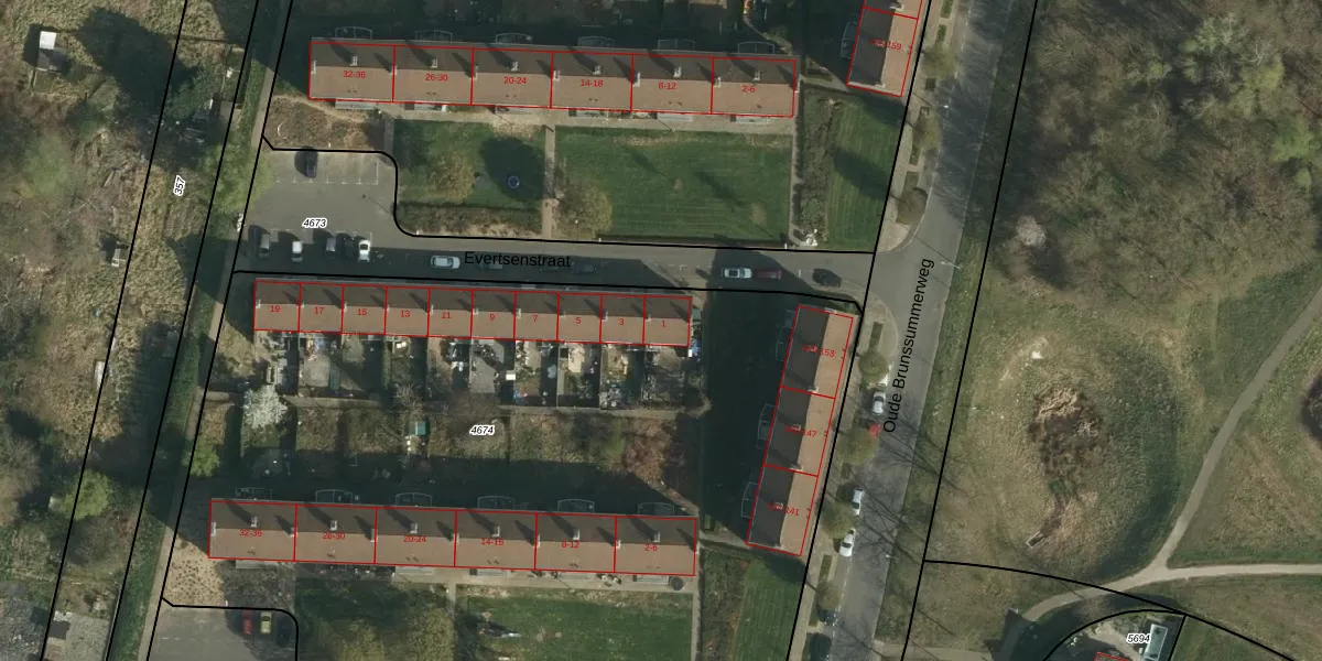 Het perceel waarop Evertsenstraat 1 staat heeft een oppervlakte van 5790 m². Dit is een zeer groot perceel. De perceeloppervlakte wordt geregistreerd door het Kadaster. Gedetailleerde informatie over de maten van dit perceel kunt u vinden in het rapport Kadastrale kaart met maatvoering van Evertsenstraat 1.
