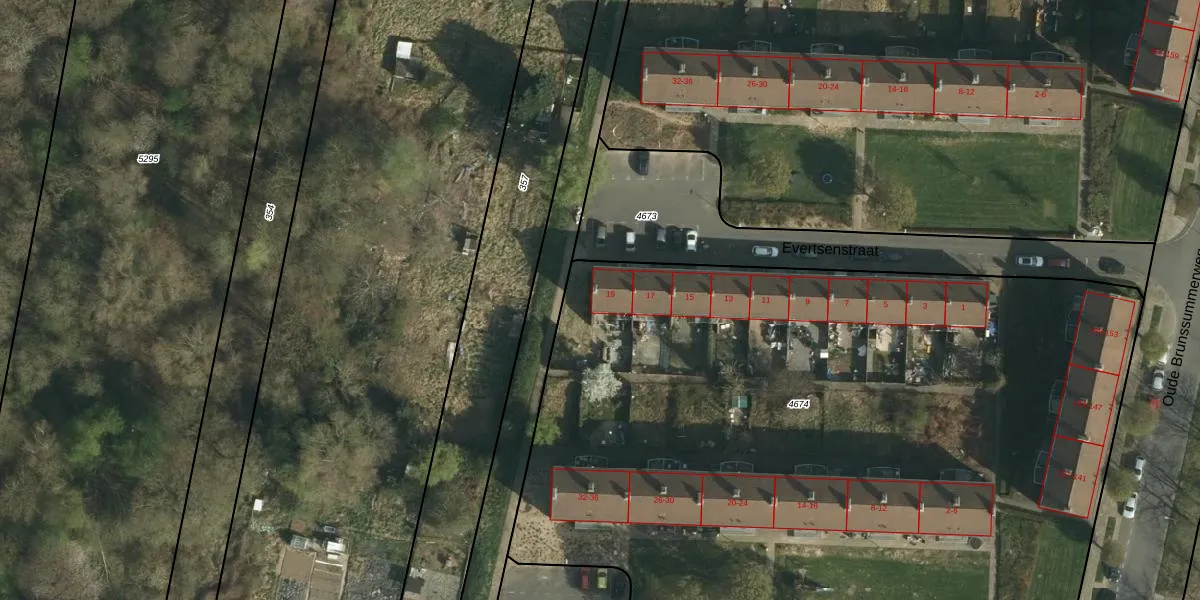 Het perceel waarop Evertsenstraat 19 staat heeft een oppervlakte van 5790 m². Dit is een zeer groot perceel. De perceeloppervlakte wordt geregistreerd door het Kadaster. Gedetailleerde informatie over de maten van dit perceel kunt u vinden in het rapport Kadastrale kaart met maatvoering van Evertsenstraat 19.