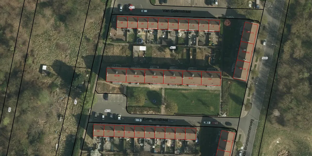Evertsenstraat 24 is gelegen op kadastraal perceel HLN01A4672. Deze kadastrale aanduiding is uniek en wordt gebruikt door het Kadaster om eigendomsrechten en andere zakelijke rechten vast te leggen. Het perceel maakt onderdeel uit van de kadastrale gemeente Heerlen.