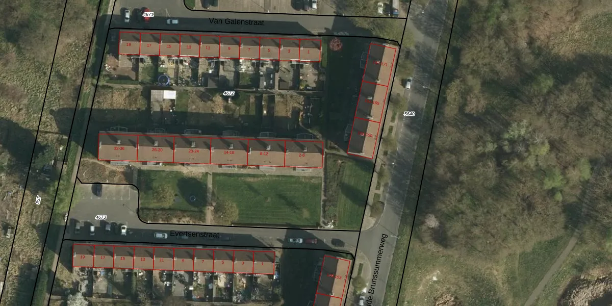Het perceel waarop Evertsenstraat 4 staat heeft een oppervlakte van 5800 m². Dit is een zeer groot perceel. De perceeloppervlakte wordt geregistreerd door het Kadaster. Gedetailleerde informatie over de maten van dit perceel kunt u vinden in het rapport Kadastrale kaart met maatvoering van Evertsenstraat 4.