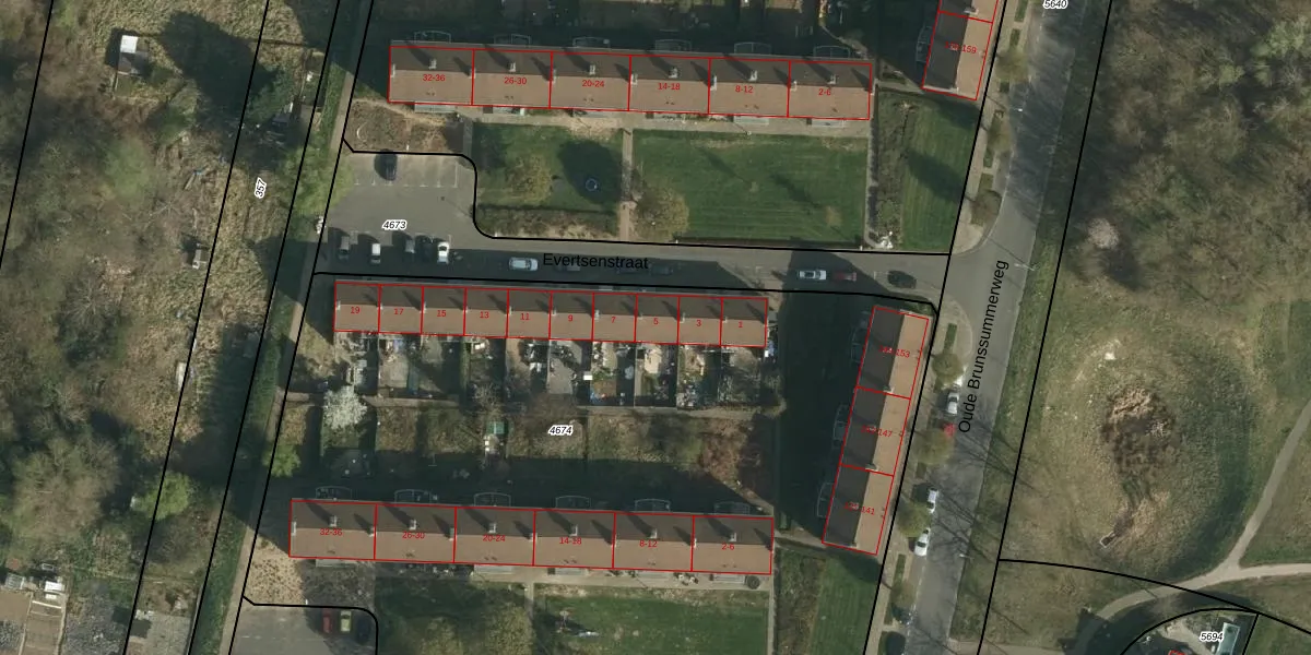 Evertsenstraat 5 is gelegen op kadastraal perceel HLN01A4674. Deze kadastrale aanduiding is uniek en wordt gebruikt door het Kadaster om eigendomsrechten en andere zakelijke rechten vast te leggen. Het perceel maakt onderdeel uit van de kadastrale gemeente Heerlen.