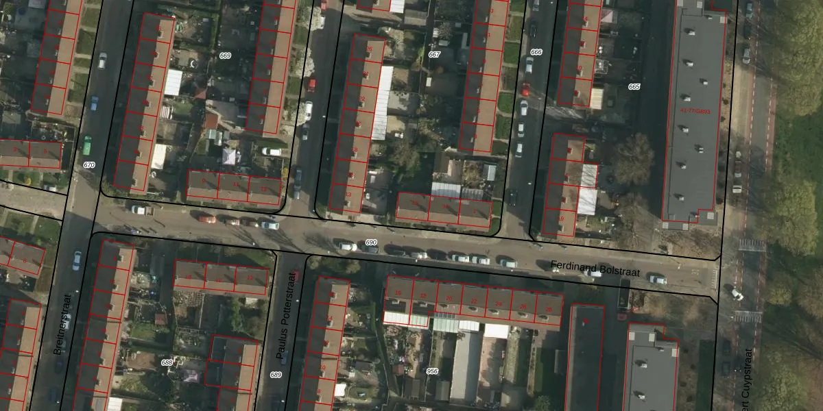 Het perceel waarop Ferdinand Bolstraat 15 staat heeft een oppervlakte van 4000 m². Dit is een zeer groot perceel. De perceeloppervlakte wordt geregistreerd door het Kadaster. Gedetailleerde informatie over de maten van dit perceel kunt u vinden in het rapport Kadastrale kaart met maatvoering van Ferdinand Bolstraat 15.