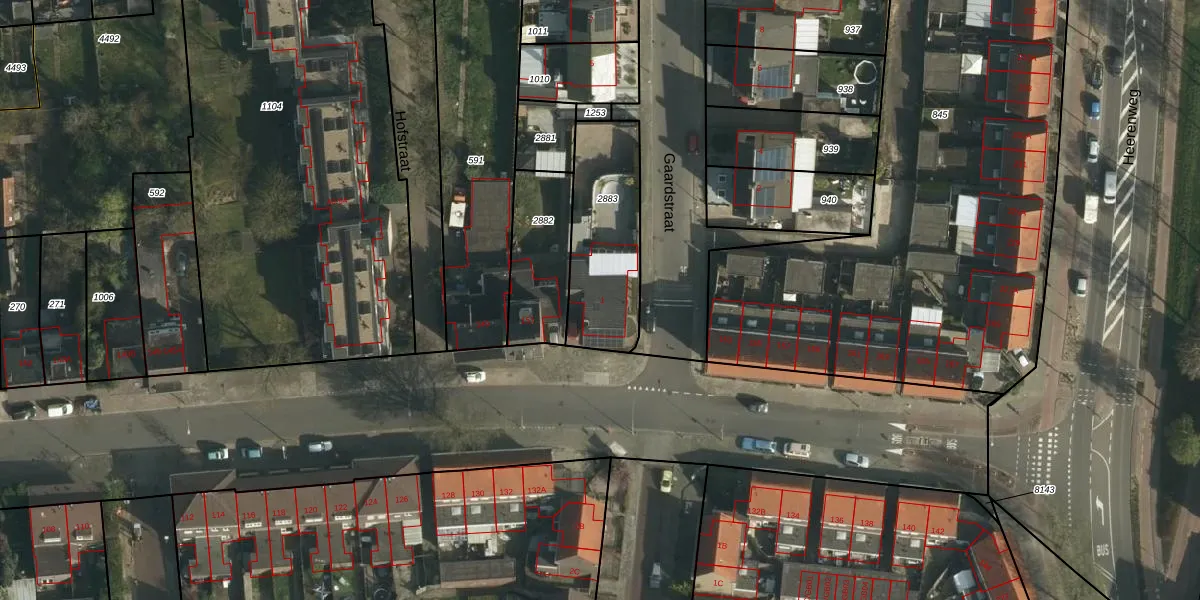 Gaardstraat 1 is gelegen op kadastraal perceel HLN01O2883. Deze kadastrale aanduiding is uniek en wordt gebruikt door het Kadaster om eigendomsrechten en andere zakelijke rechten vast te leggen. Het perceel maakt onderdeel uit van de kadastrale gemeente Heerlen.