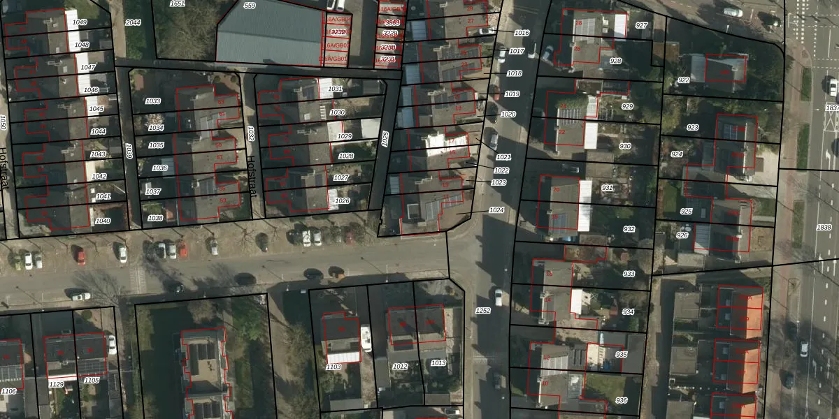 Gebruik de zoekbalk of klik op een perceel voor informatie over de adressen binnen dit perceel.