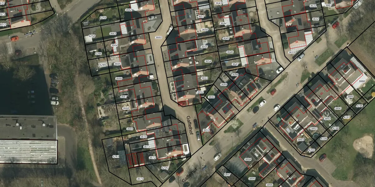 Het perceel waarop Gaffelhof 13 staat heeft een oppervlakte van 145 m². Dit is een middelgroot perceel. De perceeloppervlakte wordt geregistreerd door het Kadaster. Gedetailleerde informatie over de maten van dit perceel kunt u vinden in het rapport Kadastrale kaart met maatvoering van Gaffelhof 13.