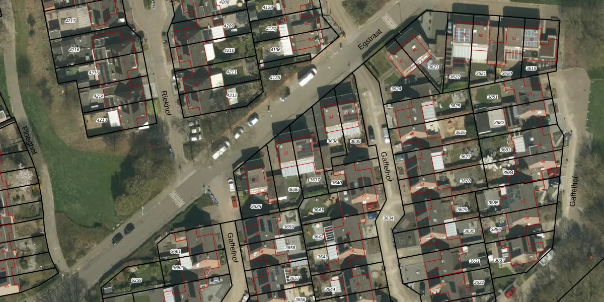 Het perceel waarop Gaffelhof 23 staat heeft een oppervlakte van 232 m². Dit is een middelgroot perceel. De perceeloppervlakte wordt geregistreerd door het Kadaster. Gedetailleerde informatie over de maten van dit perceel kunt u vinden in het rapport Kadastrale kaart met maatvoering van Gaffelhof 23.