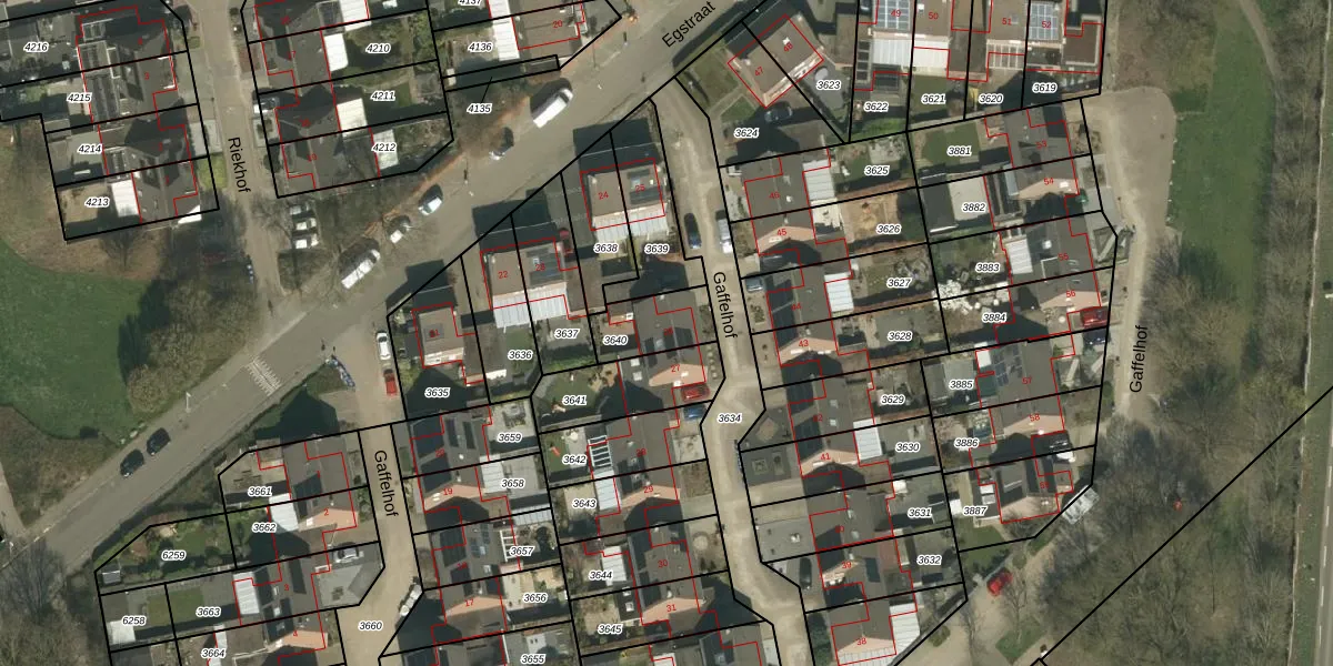 Het perceel waarop Gaffelhof 26 staat heeft een oppervlakte van 155 m². Dit is een middelgroot perceel. De perceeloppervlakte wordt geregistreerd door het Kadaster. Gedetailleerde informatie over de maten van dit perceel kunt u vinden in het rapport Kadastrale kaart met maatvoering van Gaffelhof 26.
