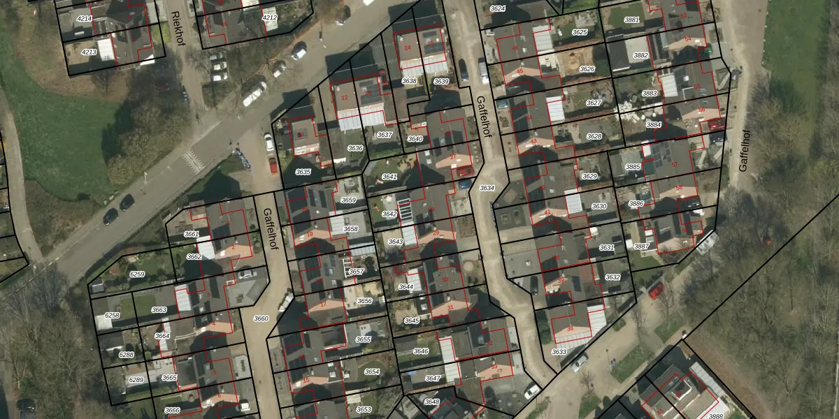 Het perceel waarop Gaffelhof 28 staat heeft een oppervlakte van 210 m². Dit is een middelgroot perceel. De perceeloppervlakte wordt geregistreerd door het Kadaster. Gedetailleerde informatie over de maten van dit perceel kunt u vinden in het rapport Kadastrale kaart met maatvoering van Gaffelhof 28.
