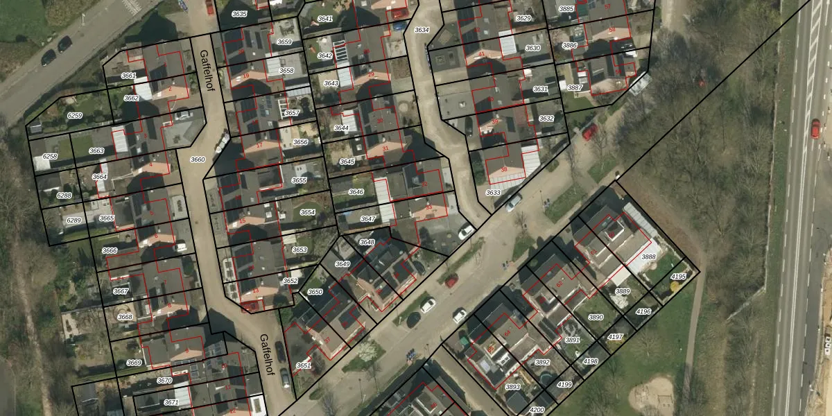 Het perceel waarop Gaffelhof 33 staat heeft een oppervlakte van 293 m². Dit is een middelgroot perceel. De perceeloppervlakte wordt geregistreerd door het Kadaster. Gedetailleerde informatie over de maten van dit perceel kunt u vinden in het rapport Kadastrale kaart met maatvoering van Gaffelhof 33.