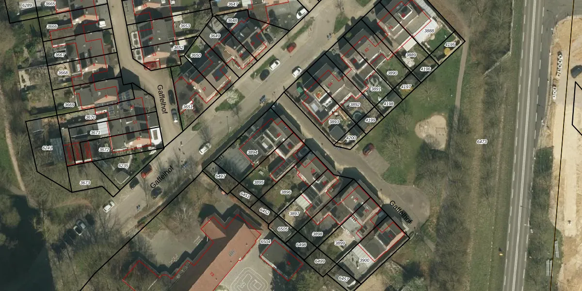 Gaffelhof 67 is gelegen op kadastraal perceel HLN01K3895. Deze kadastrale aanduiding is uniek en wordt gebruikt door het Kadaster om eigendomsrechten en andere zakelijke rechten vast te leggen. Het perceel maakt onderdeel uit van de kadastrale gemeente Heerlen.