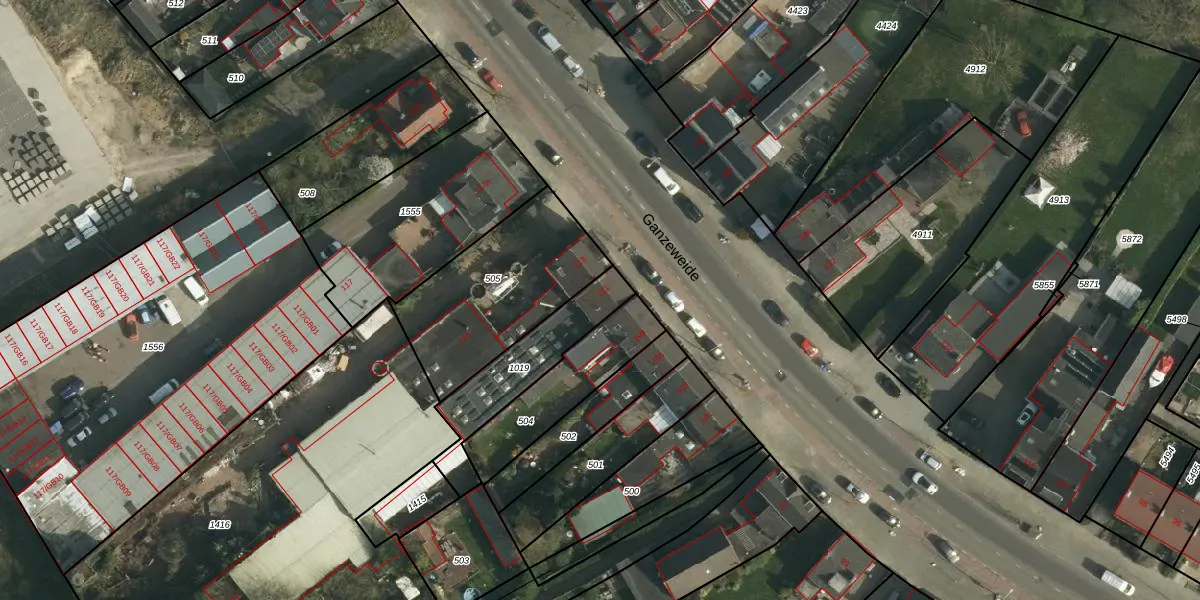 Ganzeweide 111 is gelegen op kadastraal perceel HLN01U1019. Deze kadastrale aanduiding is uniek en wordt gebruikt door het Kadaster om eigendomsrechten en andere zakelijke rechten vast te leggen. Het perceel maakt onderdeel uit van de kadastrale gemeente Heerlen.