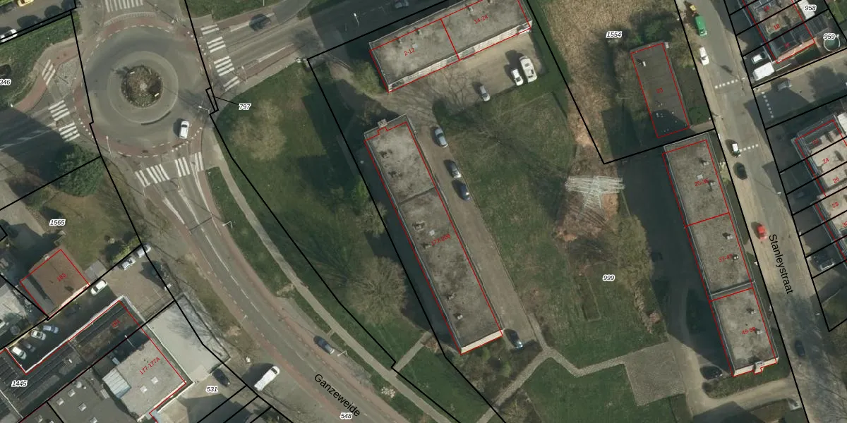 Ganzeweide 174 is gelegen op kadastraal perceel HLN01O999. Deze kadastrale aanduiding is uniek en wordt gebruikt door het Kadaster om eigendomsrechten en andere zakelijke rechten vast te leggen. Het perceel maakt onderdeel uit van de kadastrale gemeente Heerlen.