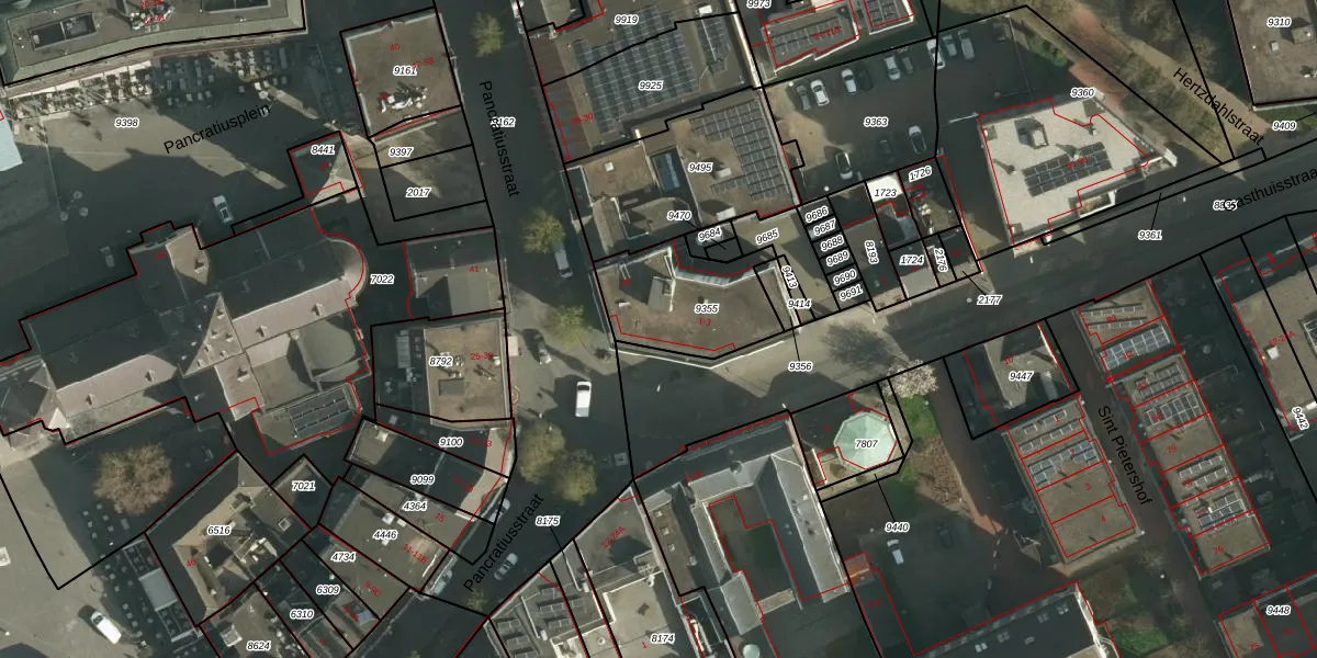 Het adres is gelegen op perceel 9355 in de sectie D en de kadastrale gemeente Heerlen. De kadastrale aanduiding is aldus HLN01-D-9355. Het perceel is kleiner dan gemiddeld in Heerlen. Het perceel is 376 m² groot, terwijl het gemiddelde ligt op 1399,59 m². De grootste perceeloppervlakte in de kadastrale gemeente is 86,1 ha. De kleinste oppervlakte bedraagt 0 m². Er zijn 10 adressen aanwezig op het perceel. In de Basisregistratie Kadaster (BRK) werden de grenzen van het perceel geregistreerd op 03-04-2013.
